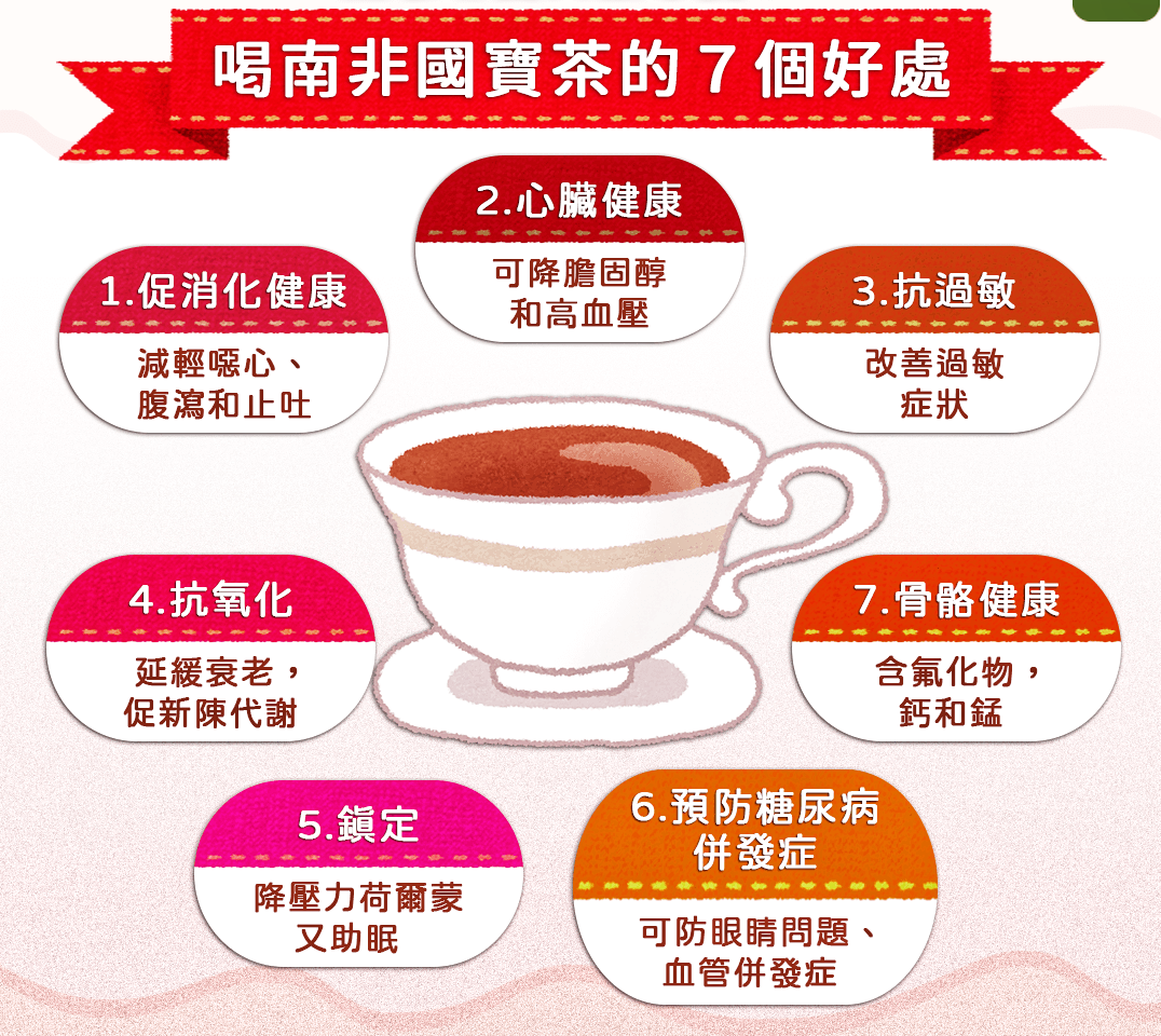 若有食物過敏或濕疹等問題,飲用南非國寶茶也會獲得改善。